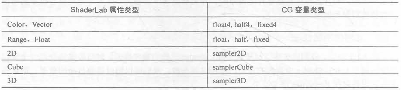 tips:代码中有说使用属性中的变量需要在下方声明一次,该变量是有特定的类型的,比如这里上面使用_MainTex,下面使用的是sampler2D,下面给出表格: