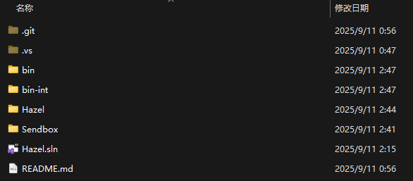 随后右键Hazel,点击Build(生成/构建),注意到此时本地文件夹资源变为了以下结构: