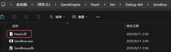 此时如果进行编码会出现错误,因为缺少那个DL文件而报错。考虑到此时我们只是测试,所以可以手动将Hazel.dll先暂时放在Sendbox的文件夹中,运行一次尝试。(后续我们会将其修改为自动化的方式,此时只是为了让学习的过程更加顺利)