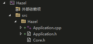 首先我们删除掉Test.h和Test.cpp,这些只是测试用的类。在Hazel下的src文件夹创建Hazel文件夹,我们将在这里放核心的类,创建一个Core.h和Application.h,Application.cpp