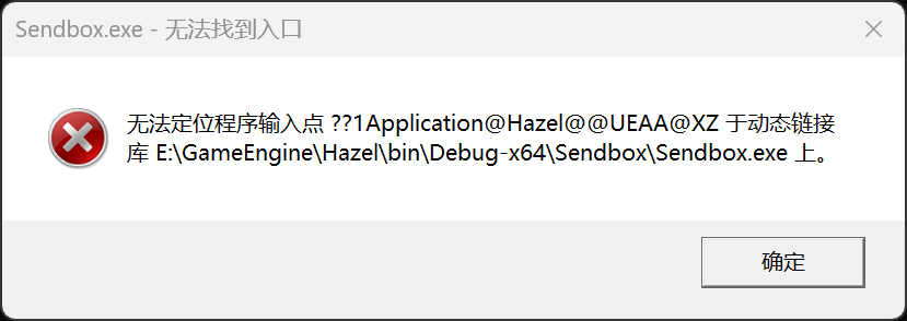 原因是我们没有更新动态链接库dll,而他现在包含了其他内容,由于我们还没有做后续的自动化,所以手动从目录中将之前的Hazel.dll再拖入sandbox中。此时即可正常运行。