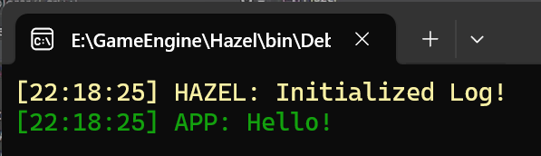 Hazel::Log::GetCoreLogger()->warn("Initialized Log!");