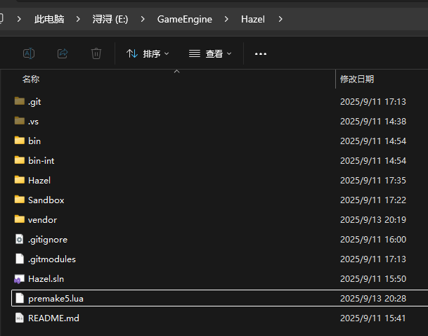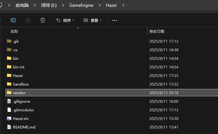 接下来我们可以删除掉主页的bin和bin-int文件,将Hazel和Sandbox里面除了src和vendor文件夹之外的都删掉,包括Hazel.sln也删掉。