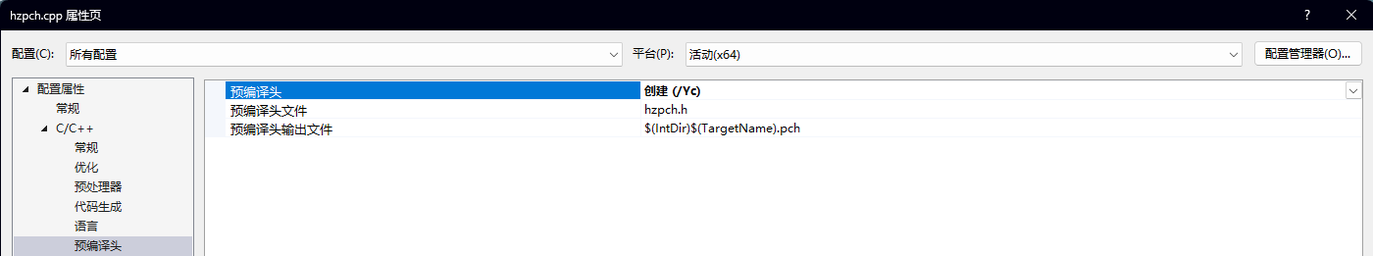 此时我们打开hzpch.cpp的属性,可以看到这里被标记为已经创建: