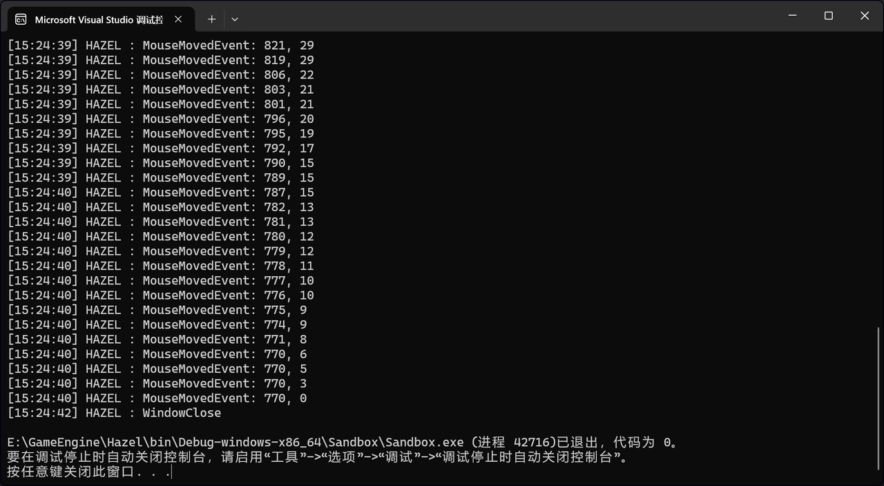 我们需要进行回调函数的处理,在Application.cpp中做添加,用SetEventCallback()这个函数来将符合EventCallbackFn签名的代码注册到Windows对象中。